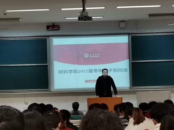 为了鼓励同学们坚定信心,放平心态,11月19日下午16:30,304永利在讲堂群103教室组织了一场考研学子慰问会,公司党委副书记孙昊、关工委老师刘忠德、辅导员金冉以及2022届材料考研学子参加了此次大会。
