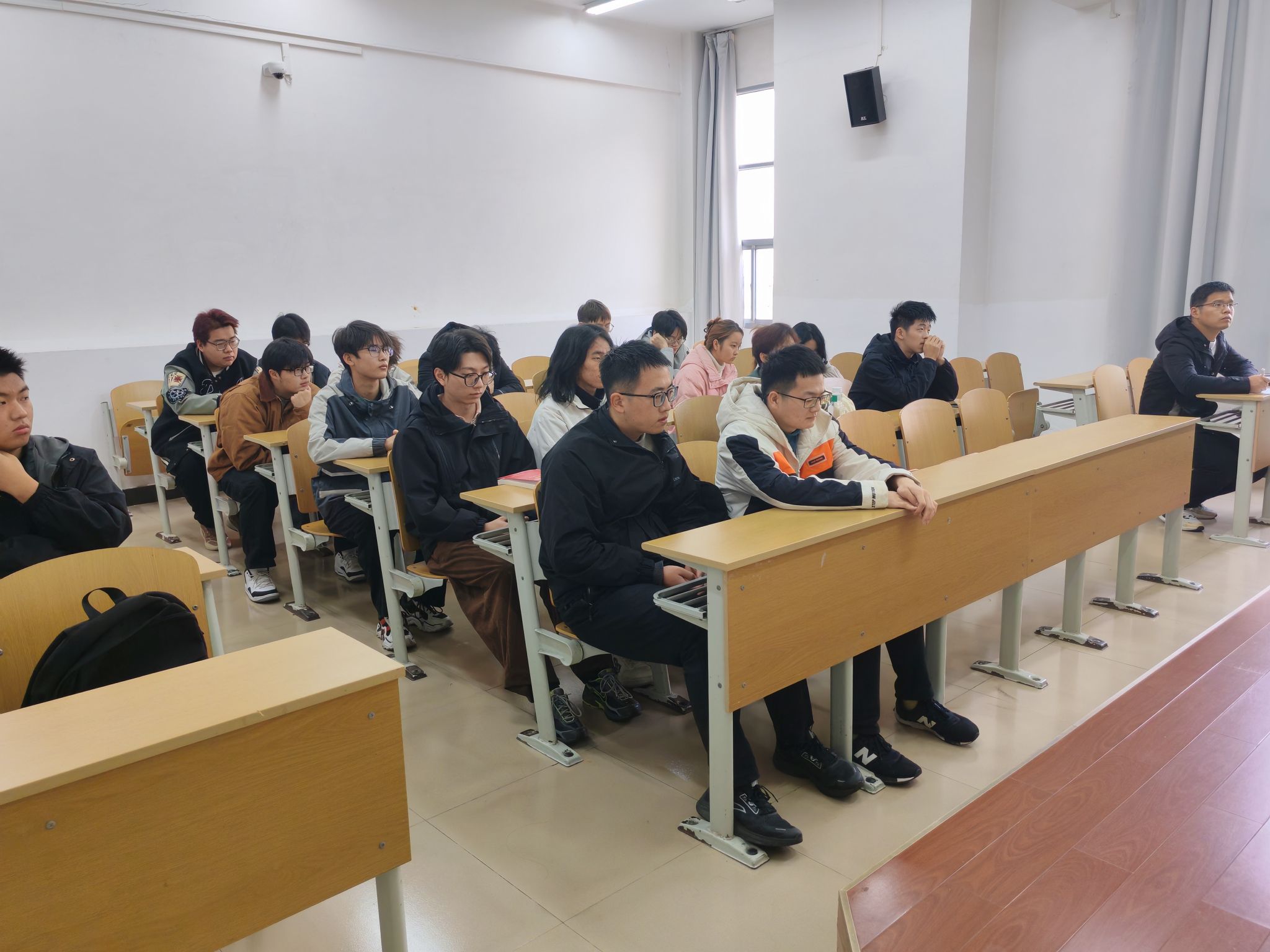 司乃潮首先分享了关于就业方面的具体实例以及部分员工平时的不良表现,强调了学风建设的重要性。然后从个人发展的角度出发,结合自身丰富的教学经验,为同学们提供了宝贵的建议和指导,并鼓励同学们积极参与到学业规划中来。同学们认真聆听,积极记录重要信息,主动反省自身不足之处,反响良好。